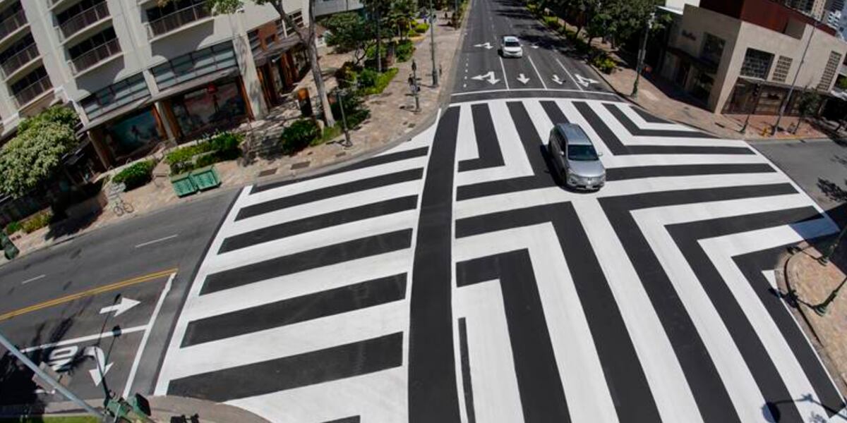 ホノルル市当局によれば、今回は試験的にBarnes’ Danceを採用してみて、歩行者の視認性を高めることに成功すれば、他の交差点にも同様の標示がされる可能性があるとのこと。