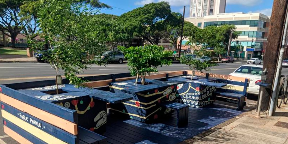具体的には、レストランの前にあるパーキングスペースにデッキを設置して屋外テーブルを置けるようにする。現在カイムキに3つのデッキを設置する計画で、最初の1台がBean About Town前に設置された。材料の木材はTrees of Honoluluから提供された再生材とのこと。