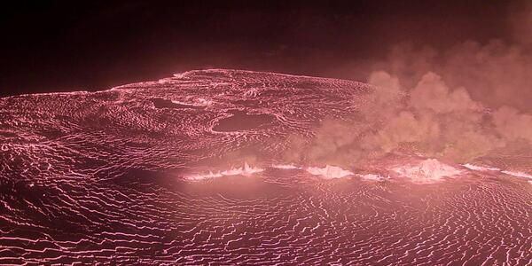 山頂ではガス放出と地震活動はが活発で。 専用の安全装備を備えたHVOのフィールドクルーは、NPSの許可を得て、ハワイ火山国立公園の閉鎖区域内からの噴火を監視している。