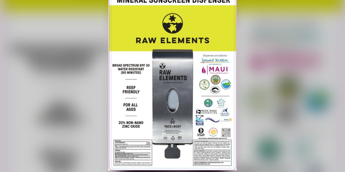 マウイ島では、10月に「ミネラル以外の日焼け止めを禁止する条例」が施行された。ディスペンサーには、Raw Elementsのオーガニック認証を受けた成分のSPF製品が使用される。これにより非ミネラル系の日焼け止めを禁止した法律を遵守することが容易になる。