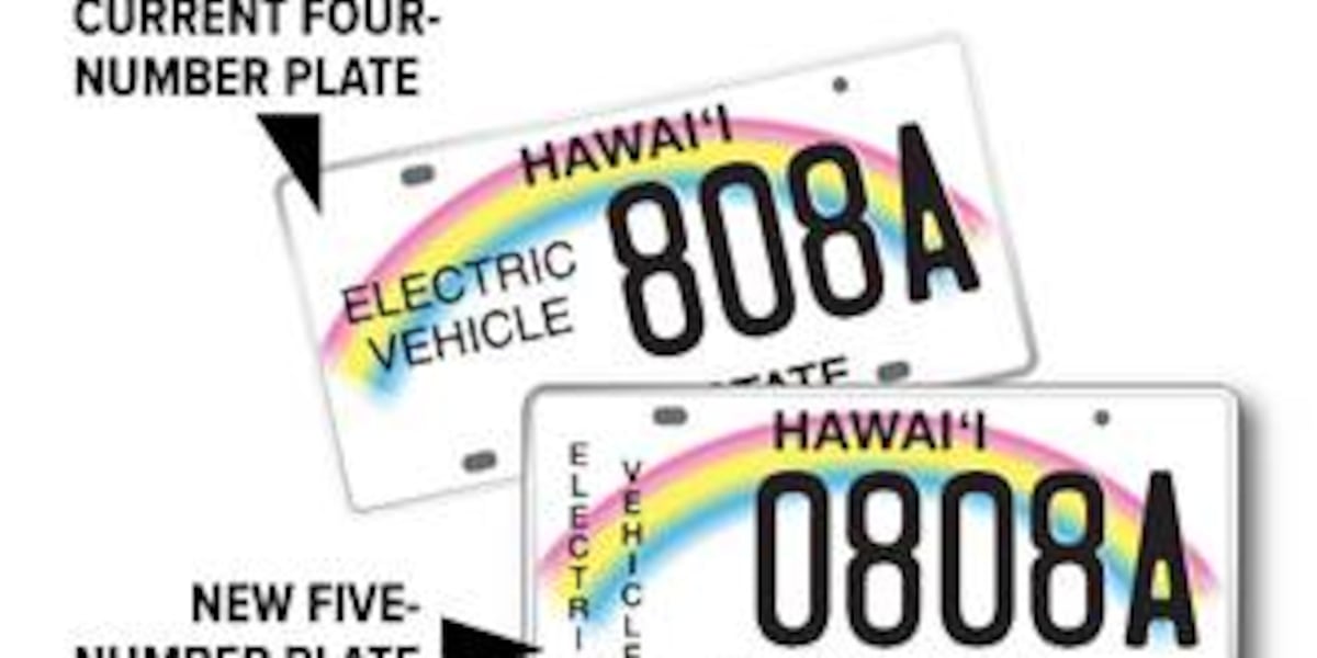 Hawaii electric vehicle license plates redesign includes additional character